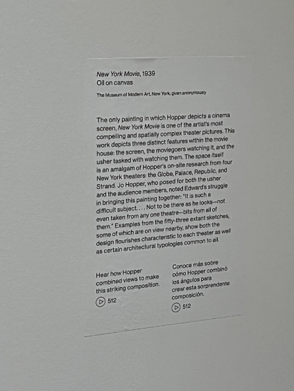 Solitary confinement is a heavenly oasis compared to what you painted so beautifully. No one cares to notice this, but you may always remember: she’ll be there. She’ll be there in all of her beauty in the dead of night, in the hallway, by herself, standing. Pondering thoughts she will never dare say to your face. If she does let them slip from her lips, she’ll go back inside the movie theatre and sit beside you. You live for the pain, Mr. Hopper. Doesn’t every artist? Starving, maybe not for food, but for another New York Movie.