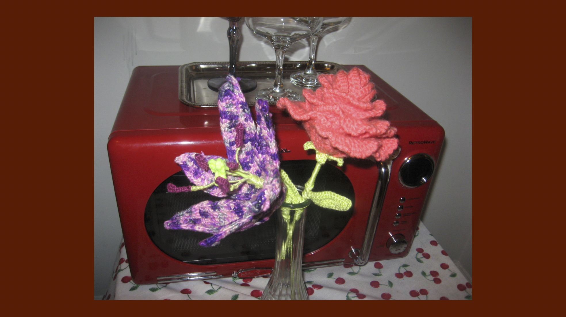 canvas. If you zoom in, the imperfections become more visible; you can see my learning curve if you closely scan the edges of the petals or the yarn tails. You can see when my skills matured and my hands warmed up to shaping the flower bulbs. Crochet can breathe new life into inanimate objects or, in this case, transform a living organism into an inanimate object. You can