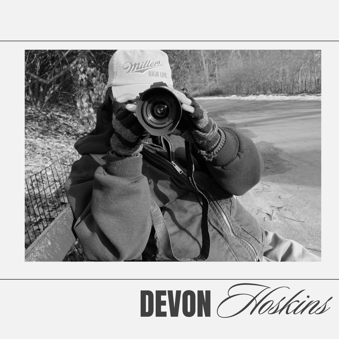 Devon Hoskins is a Videographer and Photographer based out of Brooklyn, NY. They have Directed and Edited their own films and currently works as a freelance photographer. Devon is a senior at Marymount Manhattan College getting their BFA in Film & Media and a minor in Photography. One of Devon's most recent works, The Letter, a short film has been selected to be screened at Wavestock Film Festival in November 2023. When not working on film projects Devon can be found working at City Fun Shop doing product photography. They are also passionate about music which guides most of their visual work. In the future, Devon hopes to work with artists on tour doing videography and photography.