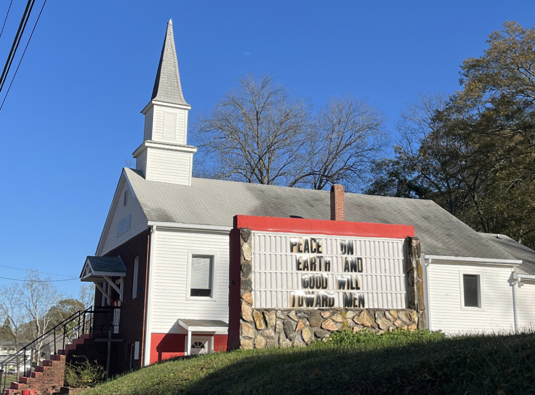 The church featured above has been active in my hometown for over 80 years and still has Wednesday youth group and Sunday service every week. Throughout the Bible Belt, church acts as the crux of social life, serving as a third space besides work and home. Church is where people in the community are able to come together and commune. Because of this, Christianity is deeply embedded in the Southern culture making religious iconography inescapable, as its displayed everywhere in road signs, schools, and advertisements.