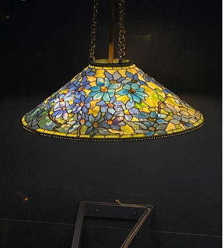 The blurbs in the gallery detail the story of Louis C. Tiffany, who started Tiffany Studios and hired Clara Driscoll to manage the Women’s Glass Cutting Department. Driscoll designed most of the lampshades and mosaics and helped during the process of making these lamps. Her and “Tiffany’s Girls” (the other women who designed and created these lamps) were ahead of their time, along with Tiffany, as they got paid well (for the time) for their work. Tiffany respected their contribution to his company and went out of his way to hire them.